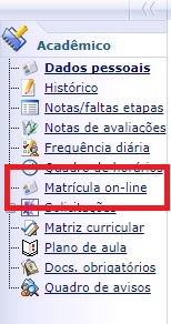 - No sistema acadêmico, clique no link Matrícula on-line. (Figura 1)