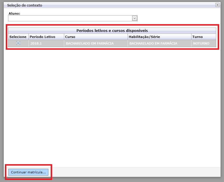 - Em seguida, selecione o curso que deseja para Rematrícula online, e clique em Continuar matrícula. (Figura 3)
