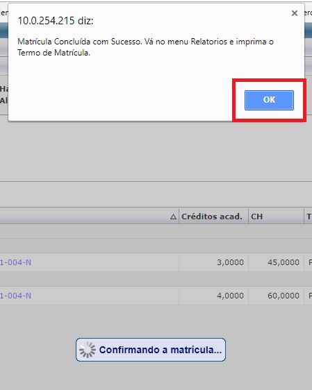 - Clique em OK para encerrar o processo de Rematrícula Online. (Figura 6)