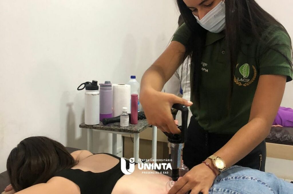 E para completar essa jornada de cuidados e atenção à saúde, o curso de Fisioterapia ofereceu práticas de liberação miofascial e ventosaterapia, técnicas terapêuticas que visam aliviar dores musculares, promover o relaxamento e estimular a circulação sanguínea.